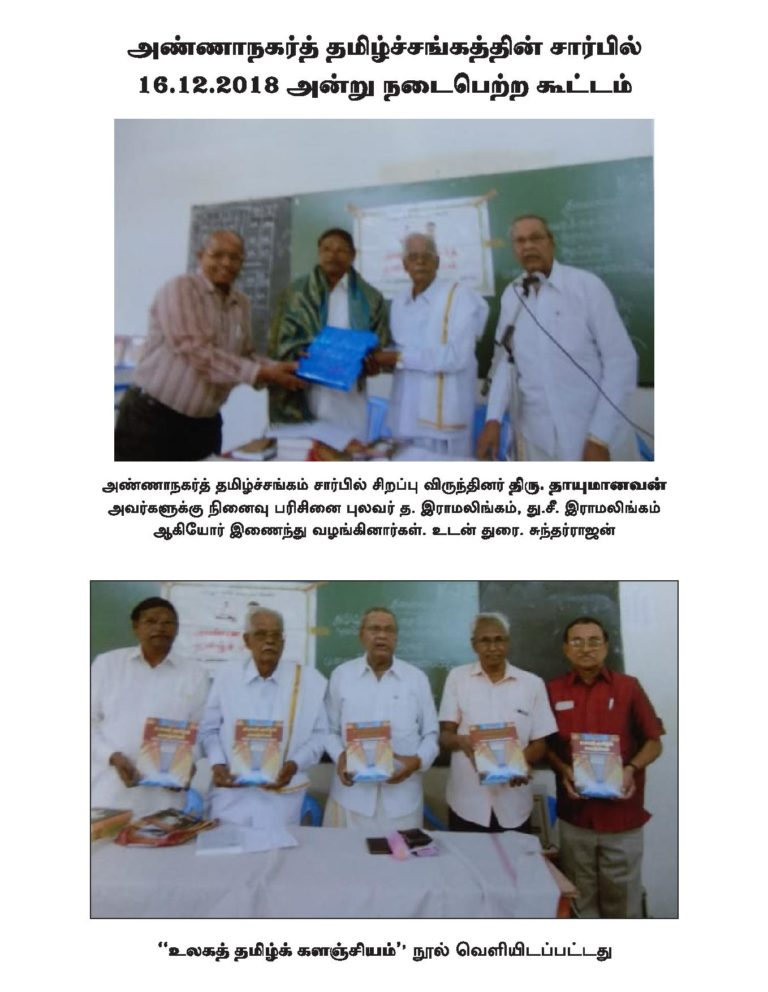 அண்ணாநகர்த் தமிழ்ச்சங்கத்தின் 323-ஆவது கூட்டம் 16.12.2018 அன்று தலைவர்