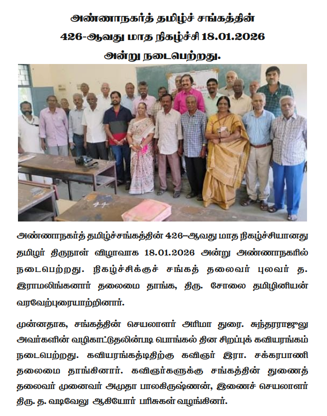 அண்ணாநகர்த் தமிழ்ச்சங்கத்தின் 426-ஆவது மாத நிகழ்ச்சியானது