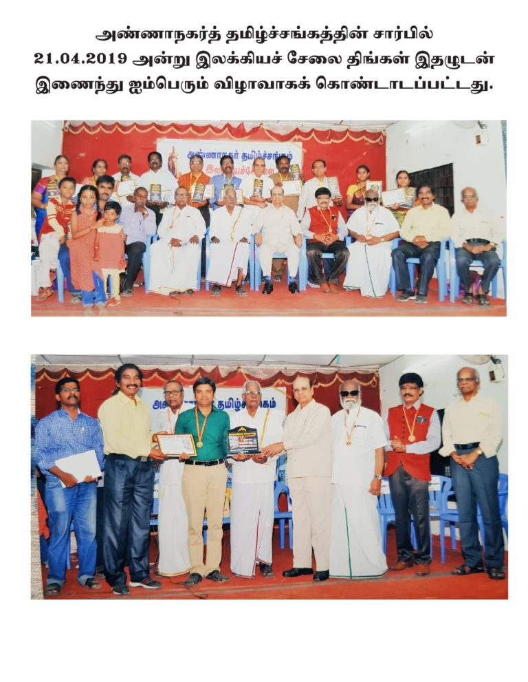 அண்ணாநகர்த் தமிழ்ச்சங்கத்தின் சார்பில் 21.04.2019 அன்று இலக்கியச் சேலை திங்கள் இதழுடன் இணைந்து ஐம்பெரும் விழாவாகக் கொண்டாடப்பட்டது.