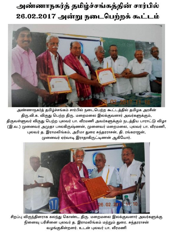 அண்ணாநகர்த் தமிழ்ச்சங்கத்தின் சார்பில் 26.02.2017 அன்று நடைபெற்றக் கூட்டம்