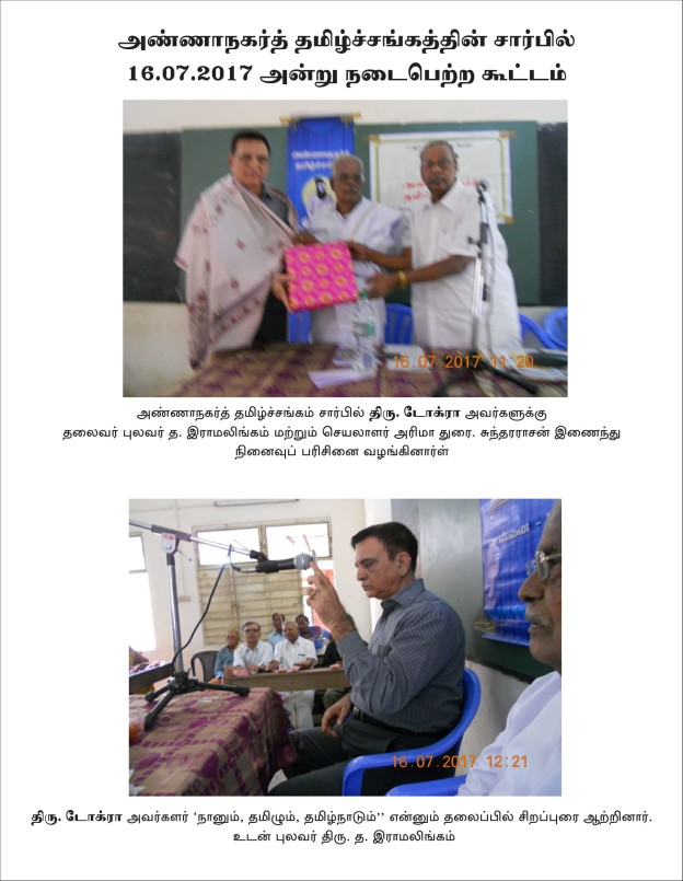 அண்ணாநகர்த் தமிழ்ச்சங்கத்தின் சார்பில் 16.07.2017 அன்று நடைபெற்ற கூட்டம்
