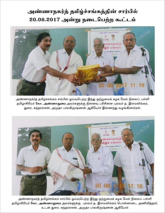 அண்ணாநகர்த் தமிழ்ச்சங்கத்தின் சார்பில் 20.08.2017 அன்று நடைபெற்ற கூட்டம்